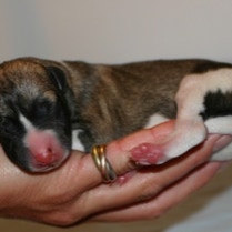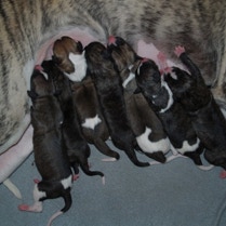 Wie erwartet sind 7 farbstarke Babies geboren worden. 5 Rüden und 2 Hündinnen.