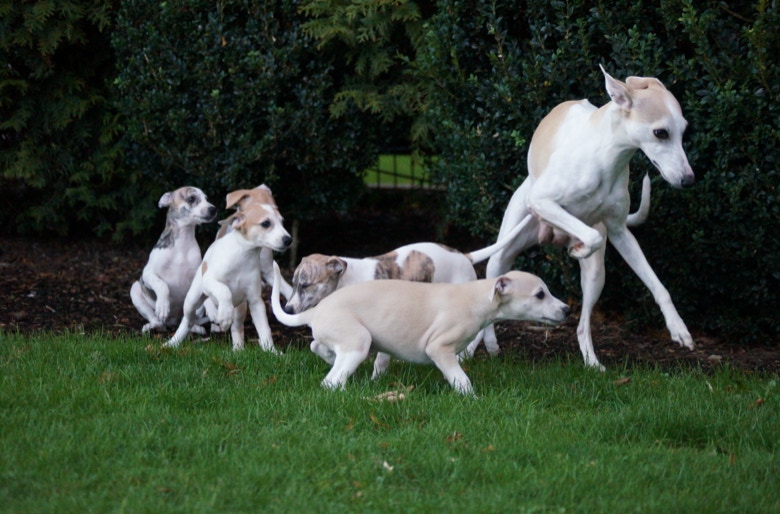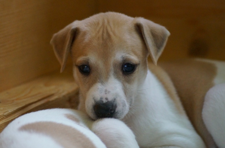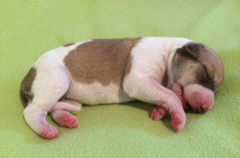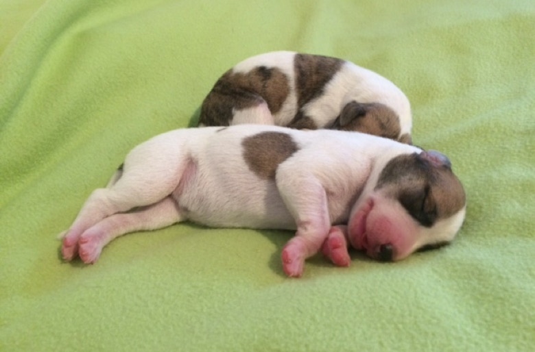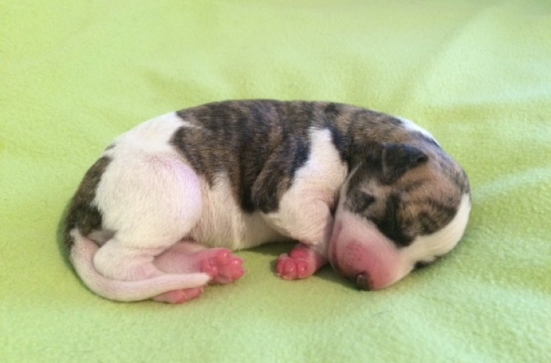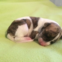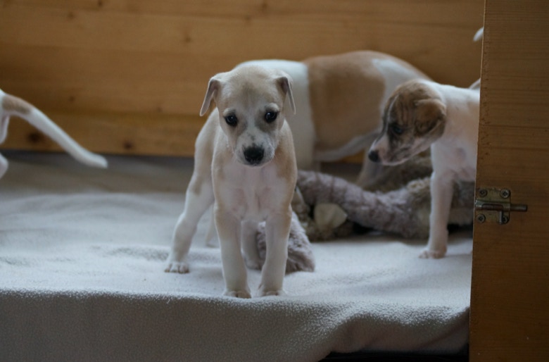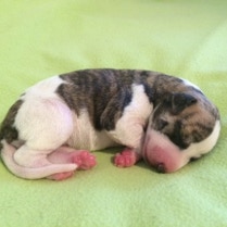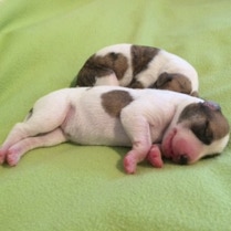 Im Oktober brachte Eve ganz unkompliziert fünf gesunde Welpen , ein Rüde und vier Hündinnen, mit gestromten und ungestomten Platten zur Welt.