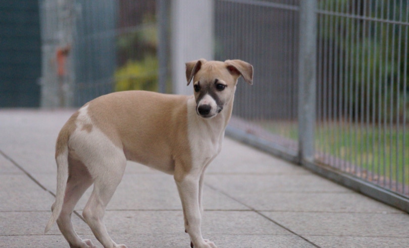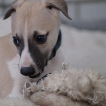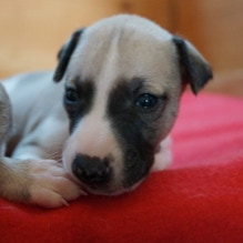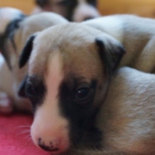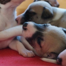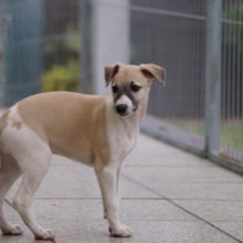 Vier Welpen sind sandfarben mit mehr oder weniger weiß, zwei Welpen sind weiß mit gestromten Platten/Mantel. Alle haben recht symmetrisch weiße Blessen. Schaut man in die Wurfkiste, so ist es ein Leichtes, die Rüden von den Hündinnen unterscheiden zu können.