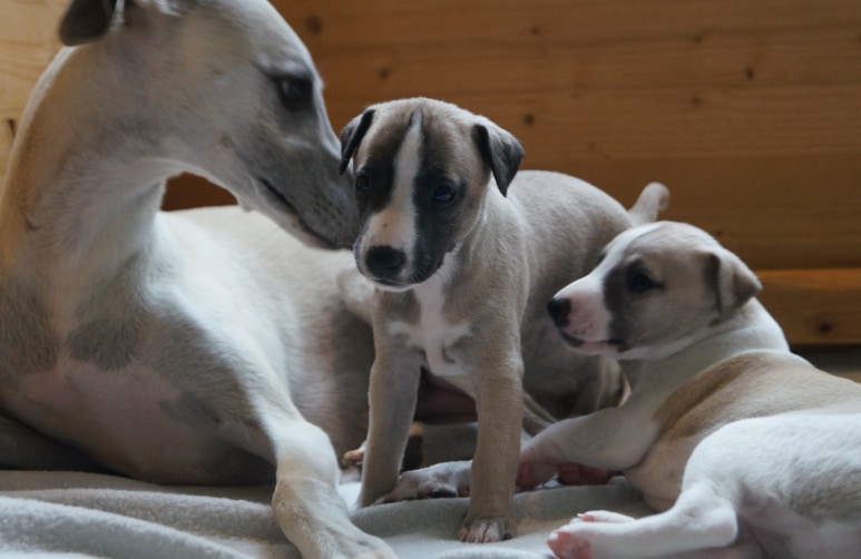 Am 04.08.2019 war es endlich soweit. Juli hat instinktsicher 4 Welpen das Leben geschenkt. Ein kleines buntes Kleeblatt. Es sind zwei Rüden und zwei Hündinnen.