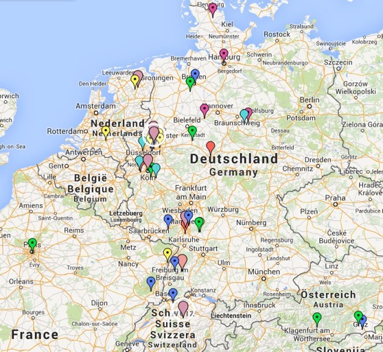 Die meisten leben in Deutschland, einige von ihnen im benachbarten Ausland (Niederlande, Frankreich, Schweiz und Österreich) aber auch in den USA und Canada. Ganz unten ist eine Karte, in der ich die Wohnorte der Zwerge eingezeichnet habe.