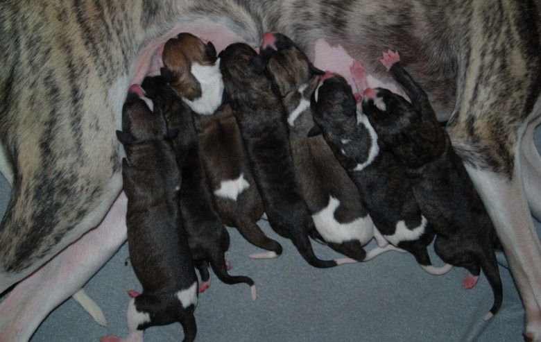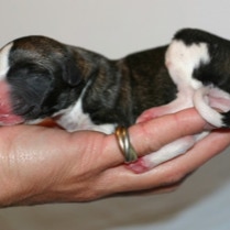 Wie erwartet sind 7 farbstarke Babies geboren worden. 5 Rüden und 2 Hündinnen.