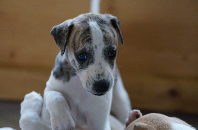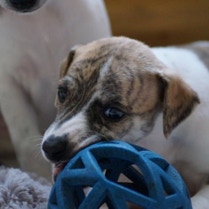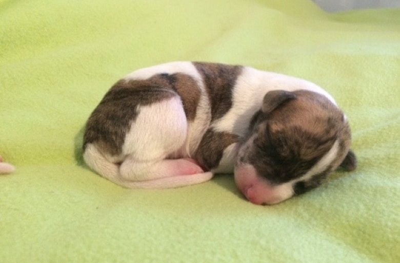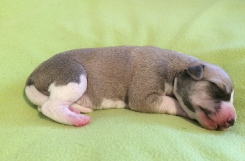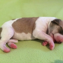 Im Oktober brachte Eve ganz unkompliziert fünf gesunde Welpen , ein Rüde und vier Hündinnen, mit gestromten und ungestomten Platten zur Welt.