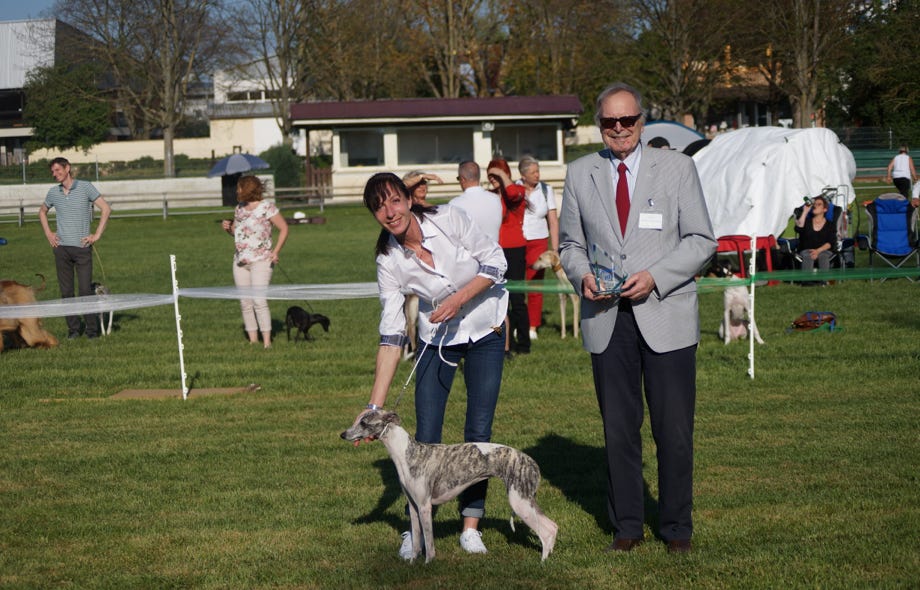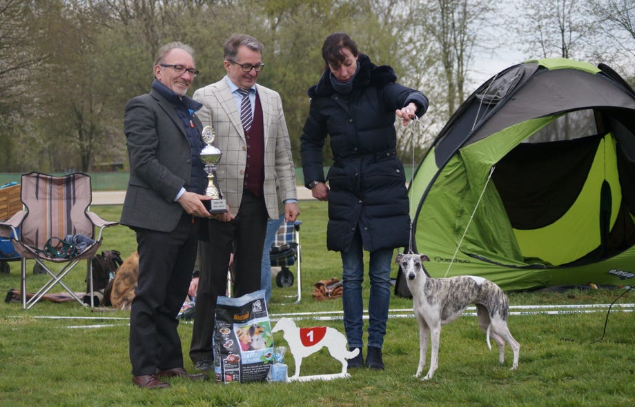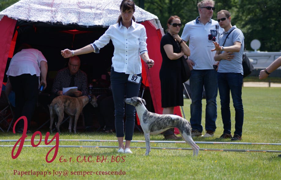 Auch in den erwachsenen Klassen konnte Joy überzeugen. In Hamburg wurde sie aus der Zwischenklasse „beste Hündin“ mit ihrem ersten CAC.